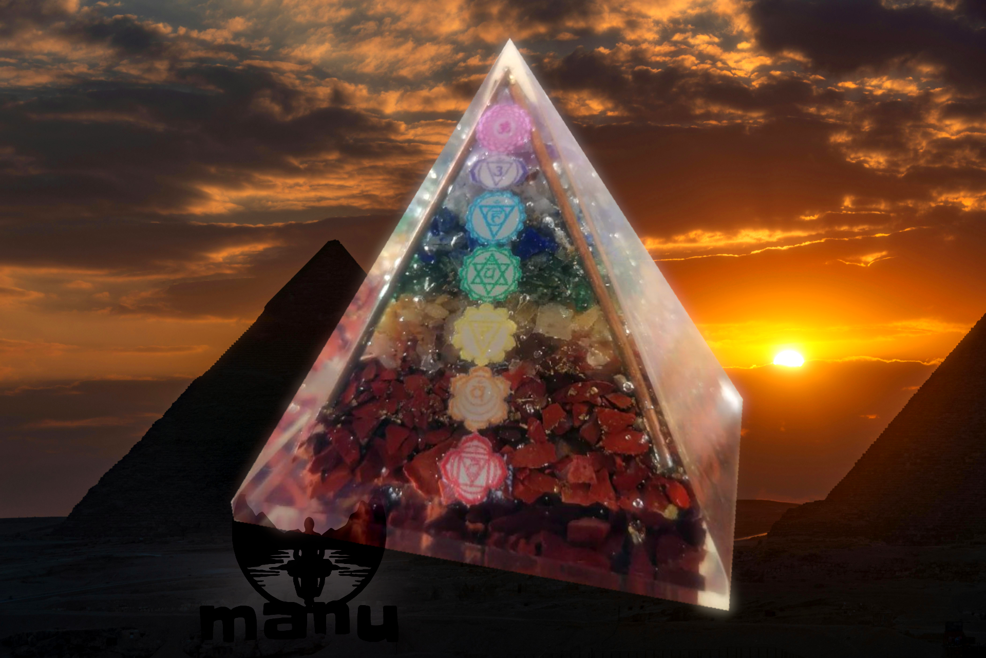 čakrová pyramida s minerály, měděnými hoblinkami i s měděnými tyčinkami zalité v pryskyřici napovídají, že půjde o dobrý vodič energie, která je nejen přenášena, ale i zesilována. Měď je bariérou proti špatné energii a vyrovnává ženské i mužské energie. Potenciál orgonitové pyramidy s využitím energie podporující čakry nabízí širší záběr využití.